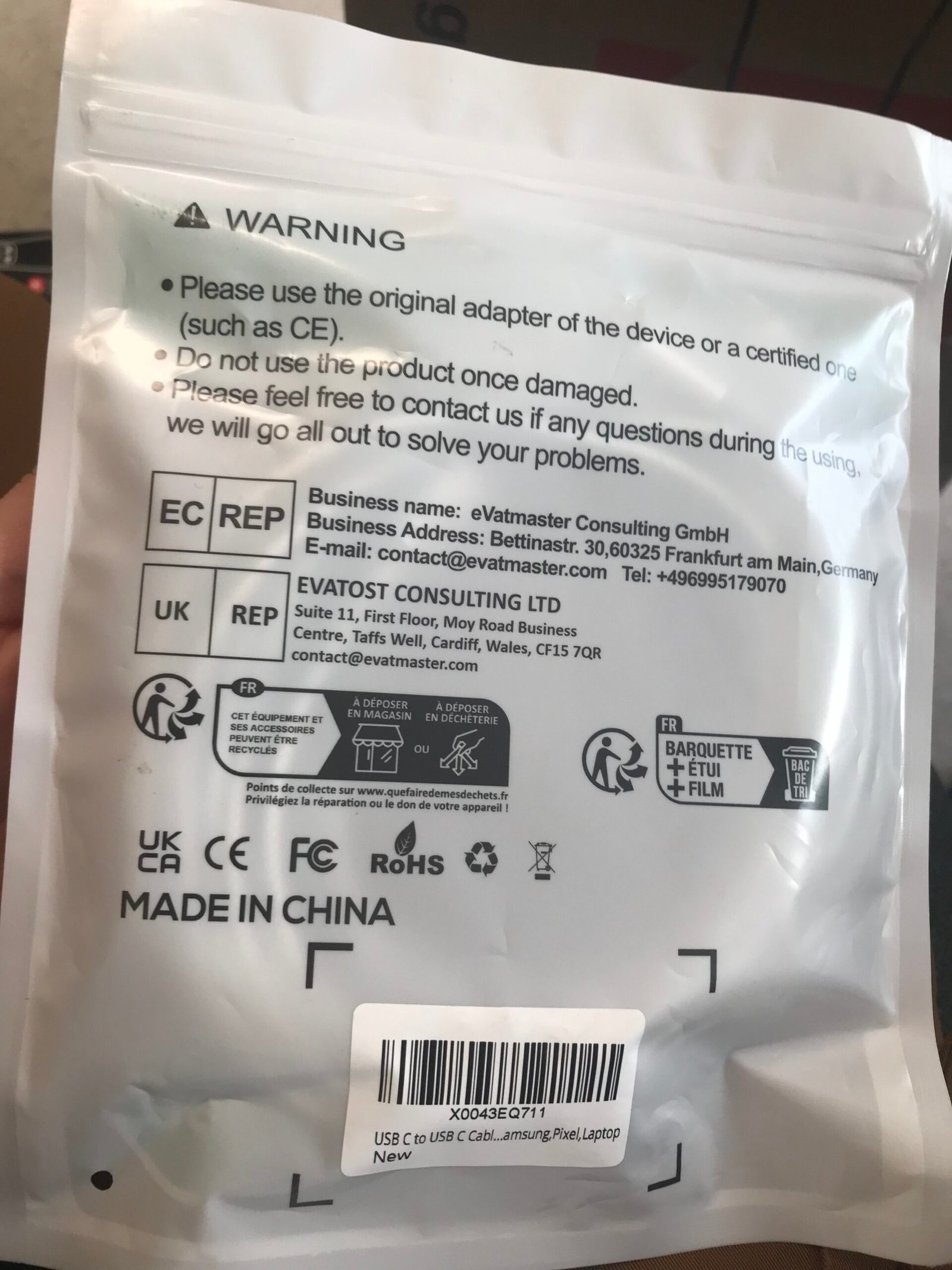 A USB charger, new and unused