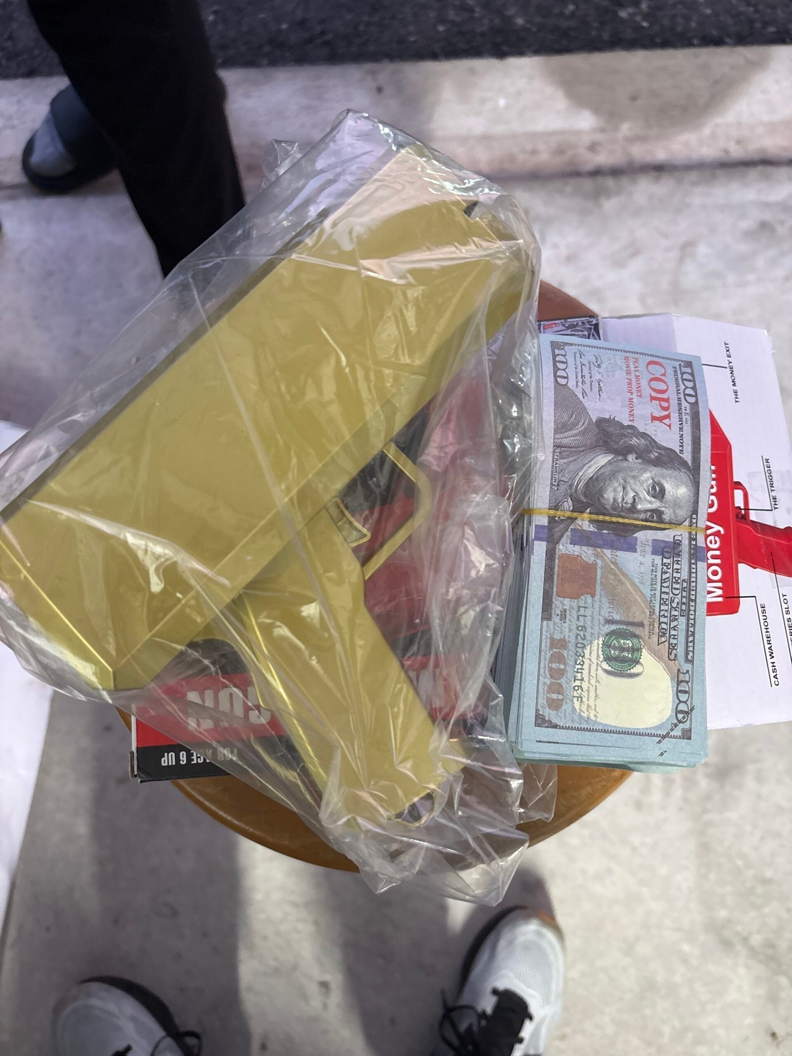 Brand new in box. Includes fake money